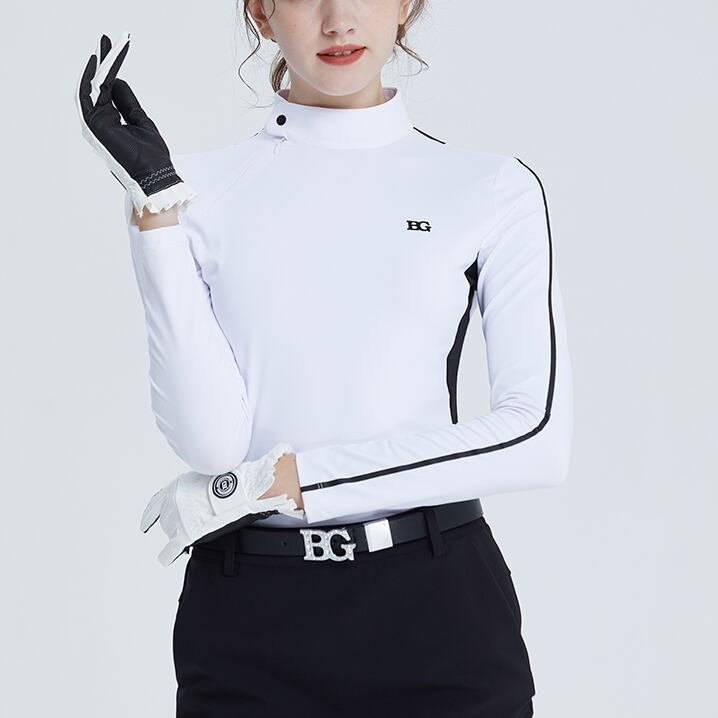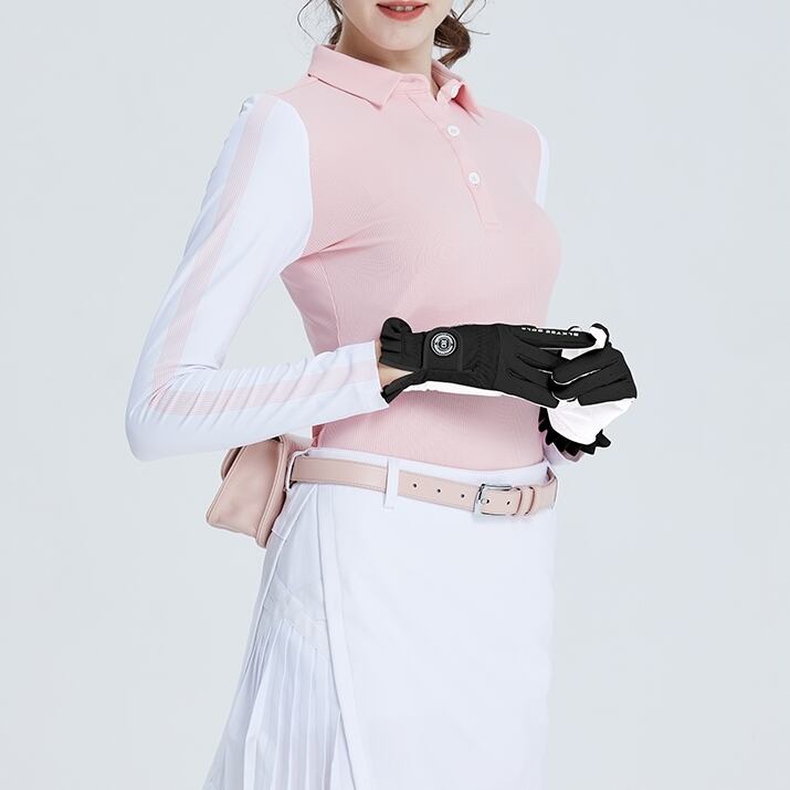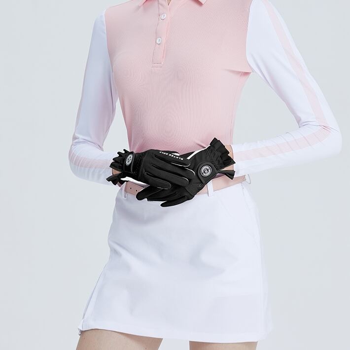 フリルが可愛らしいバイカラーのゴルフグローブ。
