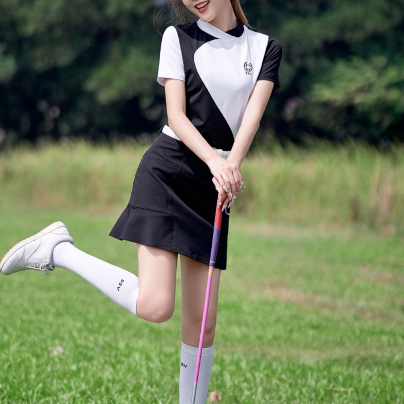 バイカラー ホワイト×ブラック 半袖Tシャツ ミニ丈スカート モノトーン セットアップ