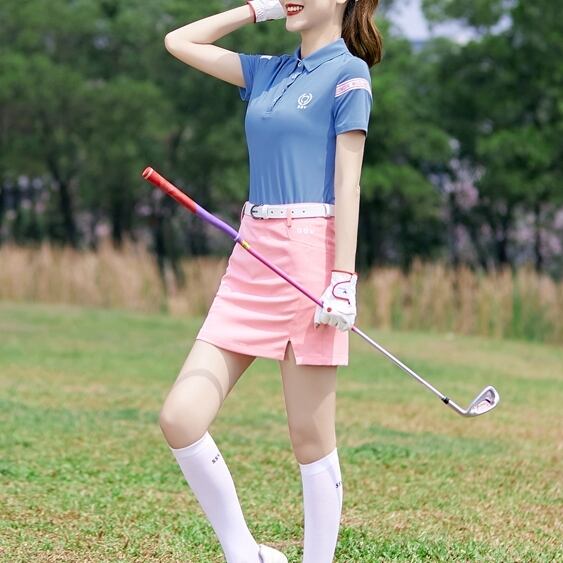 ブルー×ピンク 半袖Tシャツ ミニ丈スカート セットアップ