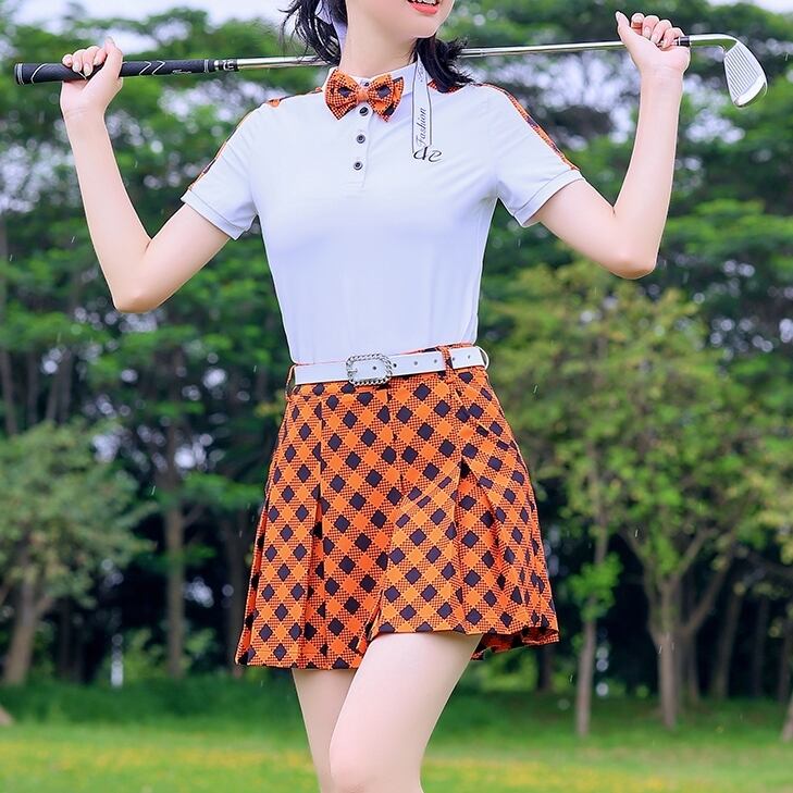 オレンジ チェック柄 プリーツスカート インナーパンツ付き